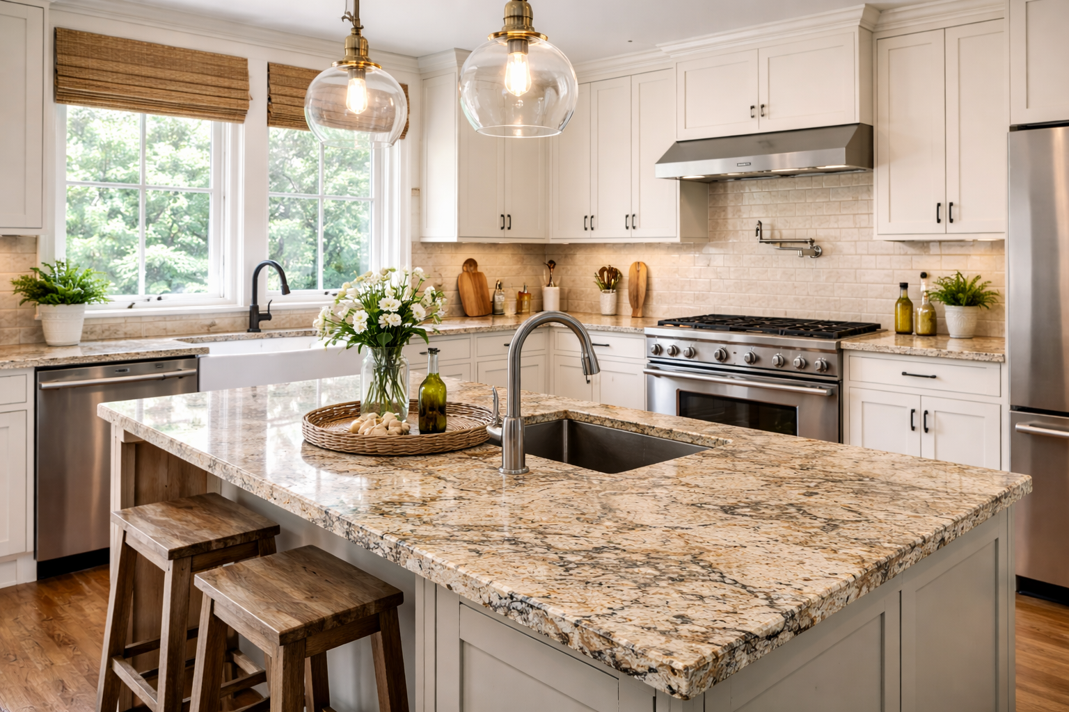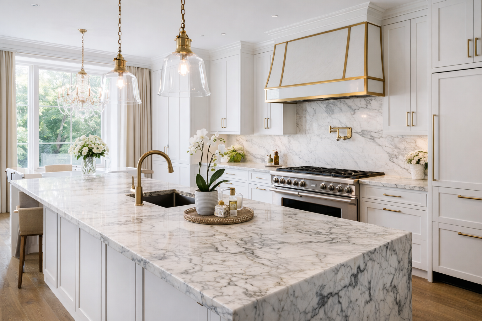 • Quartzite offers marble-like aesthetics with better performance